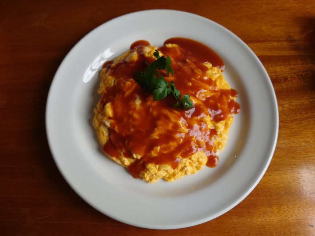 オムライスは、卵の味がとにかく濃く、砂糖を使わずともほんのり甘みを感じるのが特徴。